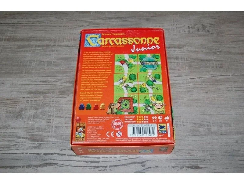 Carcassonne Junior is een bewerking van het bekende basisspel Carcassonne. Deze vereenvoudigde versie is al geschikt voor kinderen vanaf 4 jaar. Je krijgt 8 houten speelstukken, de zogenaamde kinderen van Carcassonne. Je legt landtegels aan elkaar. Als een weg is afgebouwd, mag je een van je speelstukken op die weg zetten als jouw kleur erbij staat.